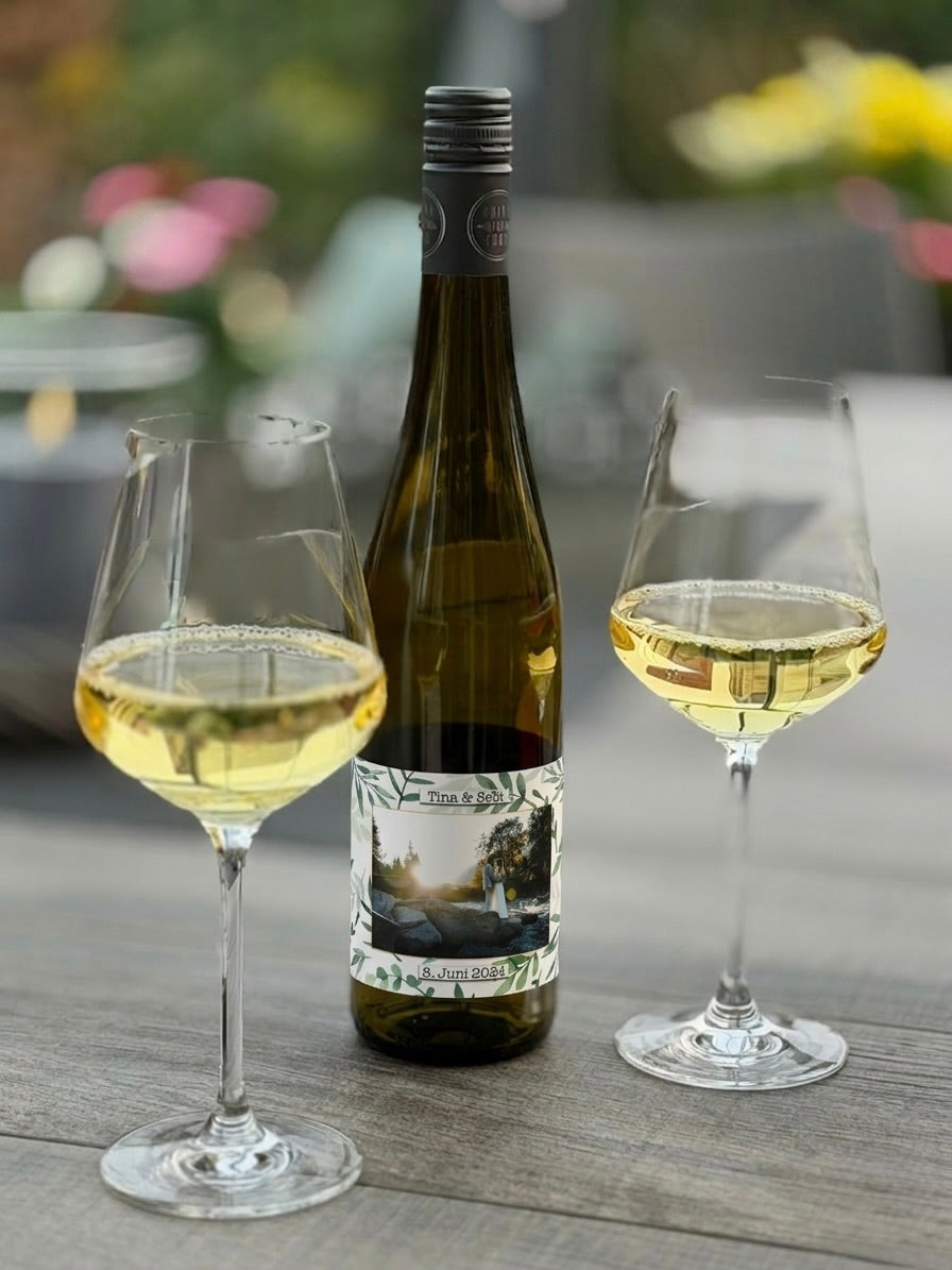 Personalisierte Flaschen als Gastgeschenke, Tischwein oder als Dankeschön.